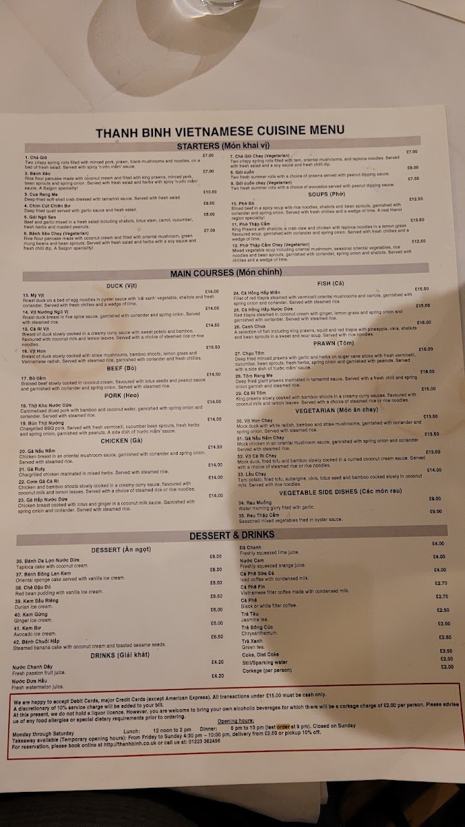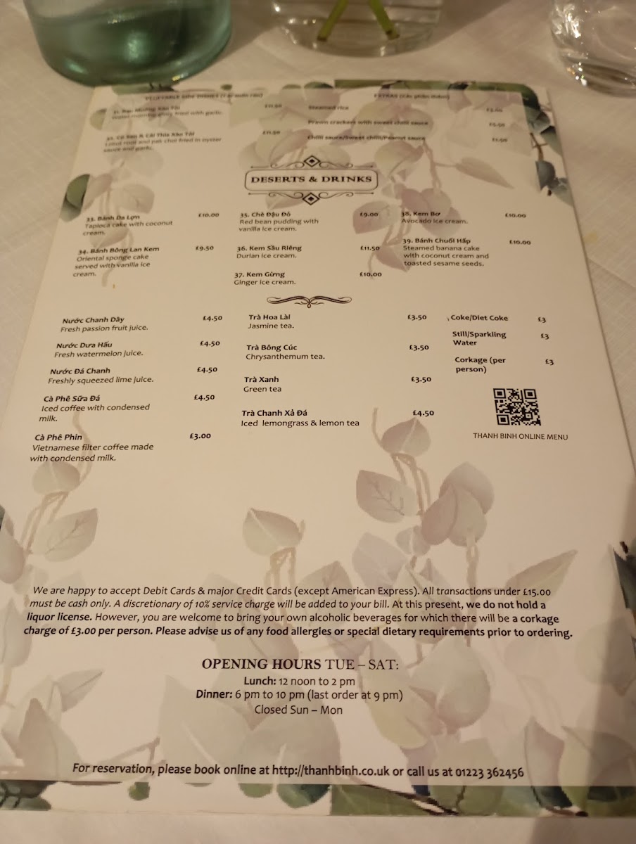 Though dessert options are the highlight, the restaurant also offers a wide range of drinks to complement your meal. While prices for some items are not provided, the diverse selection of desserts promises an exceptional dining experience. The thoughtful combination of flavors and textures makes Thanh Binh's dessert and drink menu a delightful choice for anyone looking to explore the vibrant tastes of Vietnamese cuisine in Cambridge.